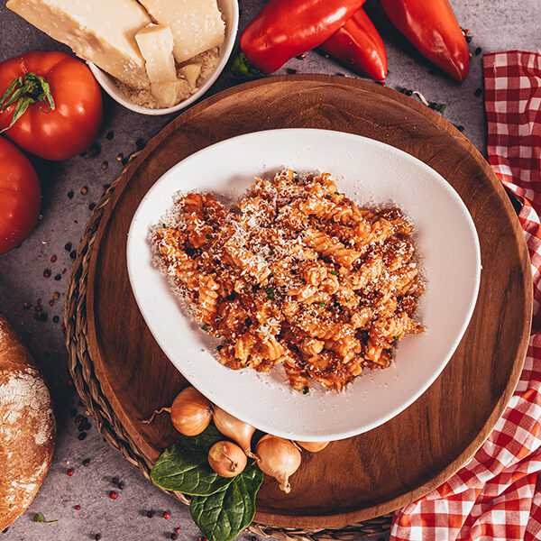 Ración de 4 pimientos con salsa de piquillos. Bandeja termosellada.