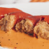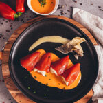 Ración de 4 pimientos con salsa de piquillos. Bandeja termosellada.